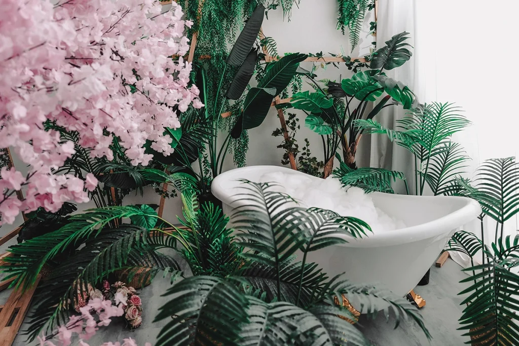 仿真植栽搭配質感浴缸,
