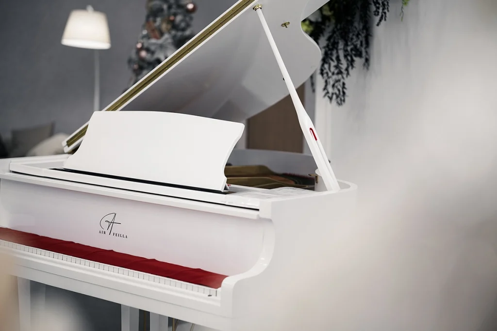 典雅白色三角鋼琴陳設,